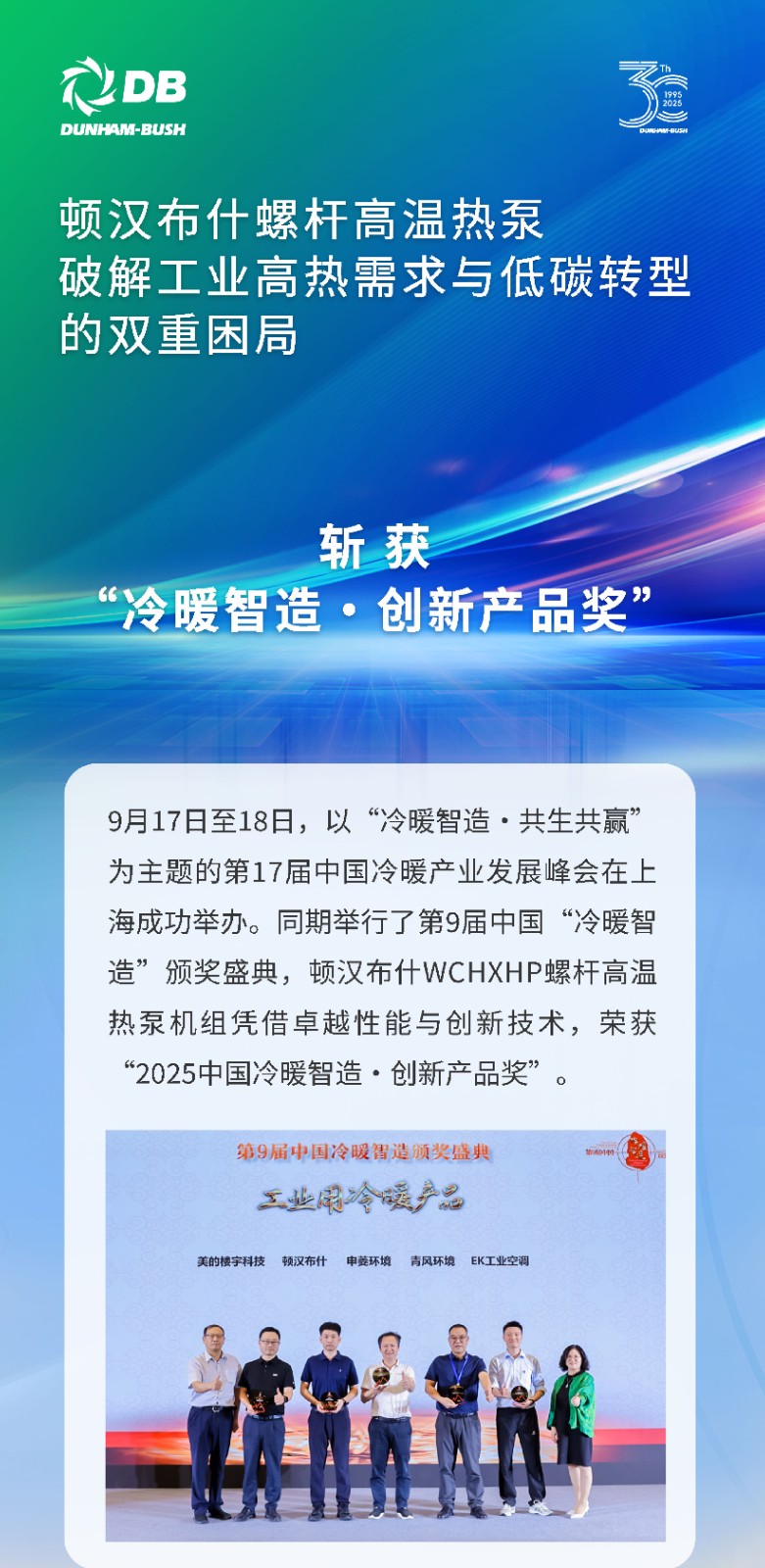 斬獲“冷暖智造·創(chuàng)新產(chǎn)品獎(jiǎng)”丨頓漢布什螺桿高溫?zé)岜闷平夤I(yè)高熱需求與低碳轉(zhuǎn)型的雙重困局