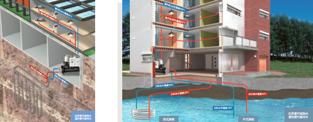 水地源熱泵系統是利用淺層地能(地表水能量)進行供熱、制冷的新型能源利用技術。水地源熱泵通常是指能轉移地 下土壤(地表水)中的熱量或者冷量到所需要的地方,充分利用了地下土壤(地表水源)巨大的蓄熱蓄冷能力。整套 系統無污染,運行高效節能。
